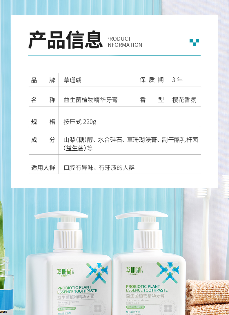 草珊瑚按压式液体牙膏益生菌酵素白小方锤